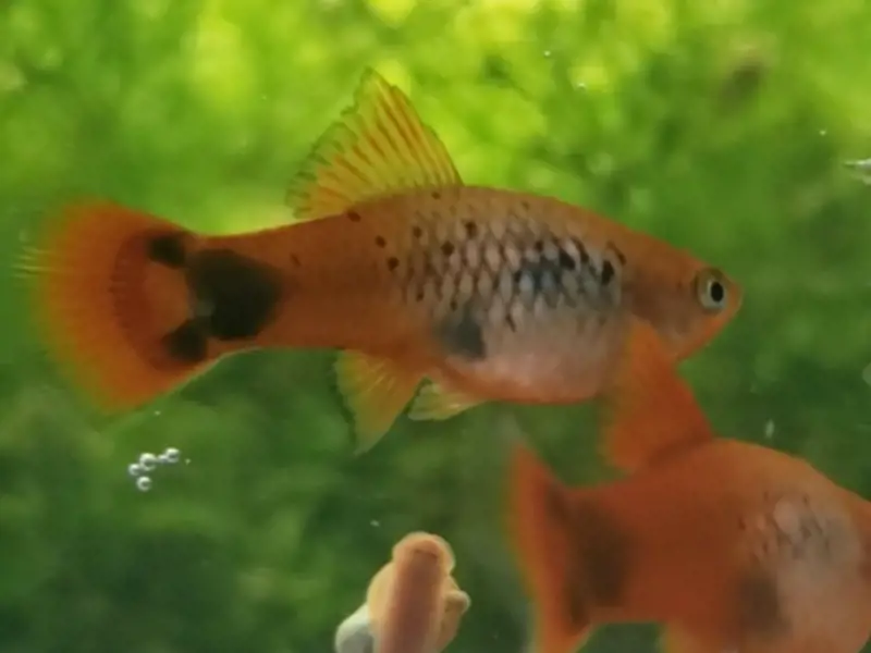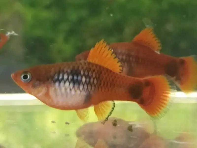 Beautiful light red / orange platy with mickey mouse pattern on coral body. A very bold color pattern that will stand out in your aquascape. Peaceful and yet quite active, we raise these gorgeous platies completely in house. Nothing Imported and Nothing Resold. Breed and Raised in the pure waters of the Idaho Mountains. This add is for one, young adult pair. Additional available on request.