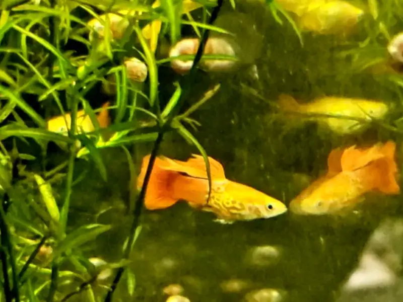 These beautiful Blonde Cobra Guppy have been bred and raised by GLA for 6 + generations. Raised in pure PNW well water ensuring the highest quality and health. Be aware the males of this variety of guppy can take 180+ days to develope their color pattern and will be very hard to differentiate for females for a number of months. Slow development but absolutely gorgeous when mature. You will receive 8 Fry plus a few extra to cover any chance of DoA. With a peaceful temperament and simple water requirements these guppies are perfect for beginners. These guppies thrive in tropical water temperatures and have been raised at ph 7.6 and 76°f in pure PNW well water. As one of the most popular and beloved species of fish, these Guppies are a must-have for any aquarium enthusiast. Growing to sizes of approx two inches the males remain slightly smaller than females at maturity. These males begin with a yellow orange tint and become more red with age and will develope their trademark cobra pattern late in development. All cool weather shipments receive a free heat pack and will be sent with the same care we give all the fish we raise here, in house. Nothing resold or imported. Refund only on doa with multiple clear photos emailed within 2 hrs of UPS delivery. Must clearly show any passed fish still in shipping bags. We pack and insulate all boxes to top quality but accidents happen out of our control with shipping. Therefore shipping is non refundable.