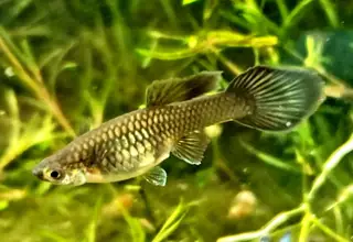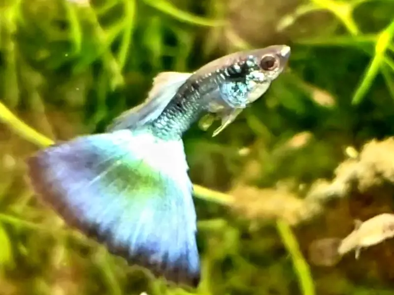 Shimmering gems of the guppy world. These are from our own stock lines maintained for numerous years. We are now focusing on developing their matching females to show deep blue tail highlights and a dramatic long dorsal so they pair beautifully with our flashy males. Never disappointing!!